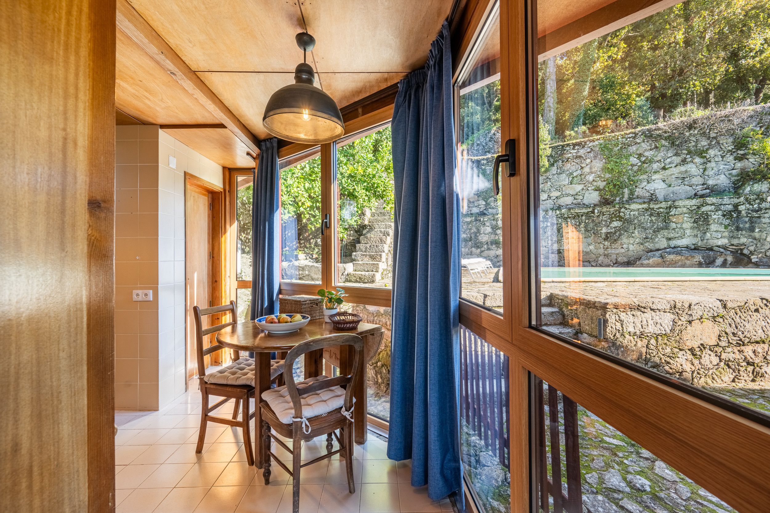Es gibt einen friedlichen Swimmingpool, der perfekt zum Abkühlen oder zum Verbringen gemütlicher Nachmittage in der Sonne ist. Der integrierte Grill und ein großer Holz-Esstisch im Freien laden die Gäste ein, unvergessliche Mahlzeiten im Freien, umgeben von der Natur, zu genießen.
