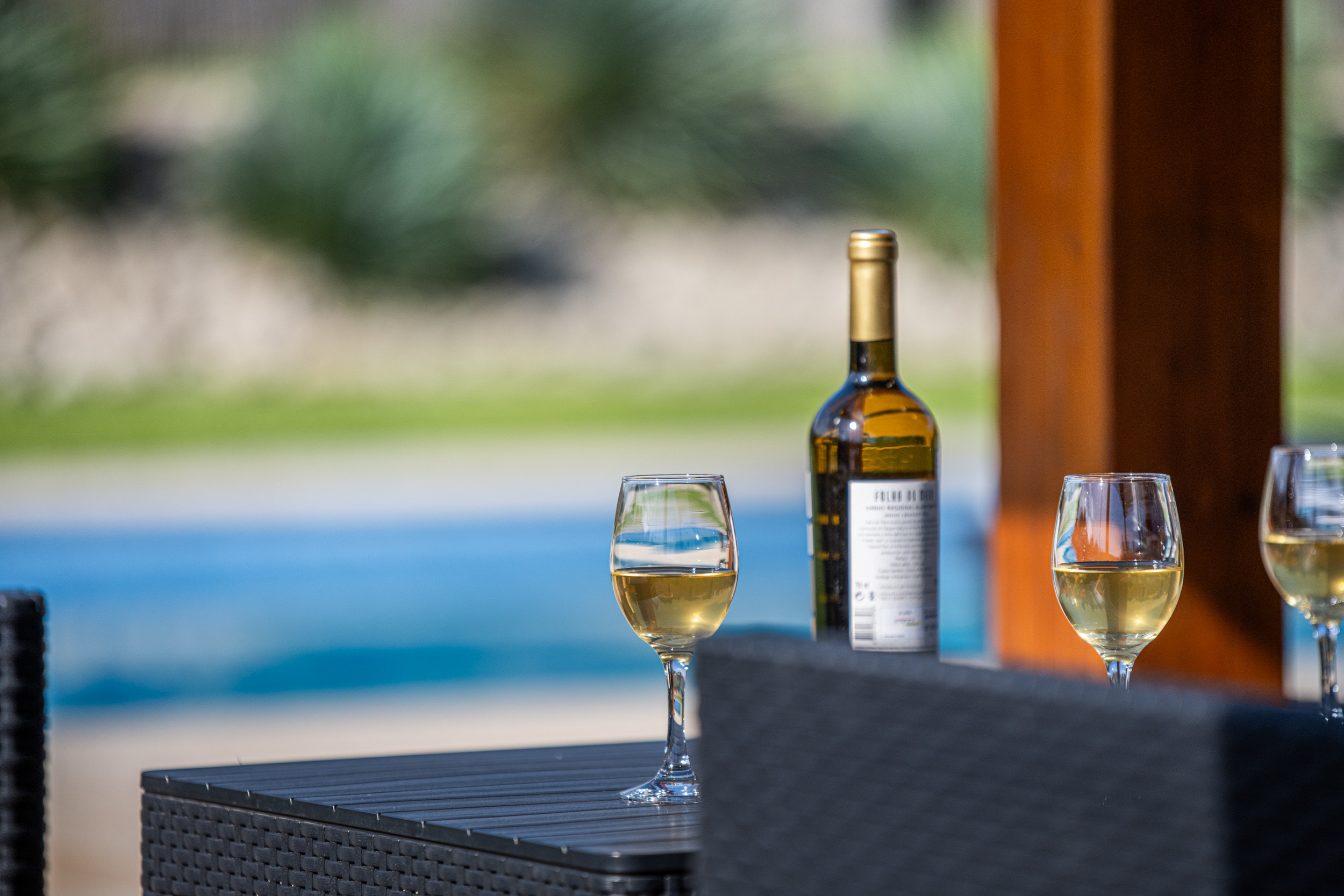 Im Haupthaus erwartet Sie eleganter Komfort. Sie finden eine geräumige Küche, ein einladendes Wohnzimmer, drei Doppelschlafzimmer, jedes mit eigenem Badezimmer und Minibar, ein Doppelschlafzimmer und ein Duschbad. Jeder Raum wurde sorgfältig gestaltet, um Wärme, Komfort und Stil zu verbinden und einen erholsamen Aufenthalt für jeden Gast zu gewährleisten.