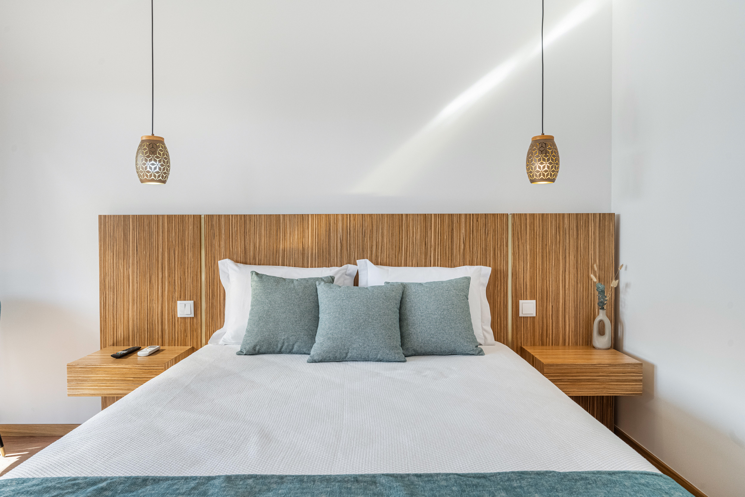 Doppelschlafzimmer mit eigenem Bad und TV. Zweibettzimmer mit eigenem Bad. Hauptschlafzimmer mit Doppelbett und eigenem Bad, TV und privatem Balkon mit Blick auf das Schwimmbad.