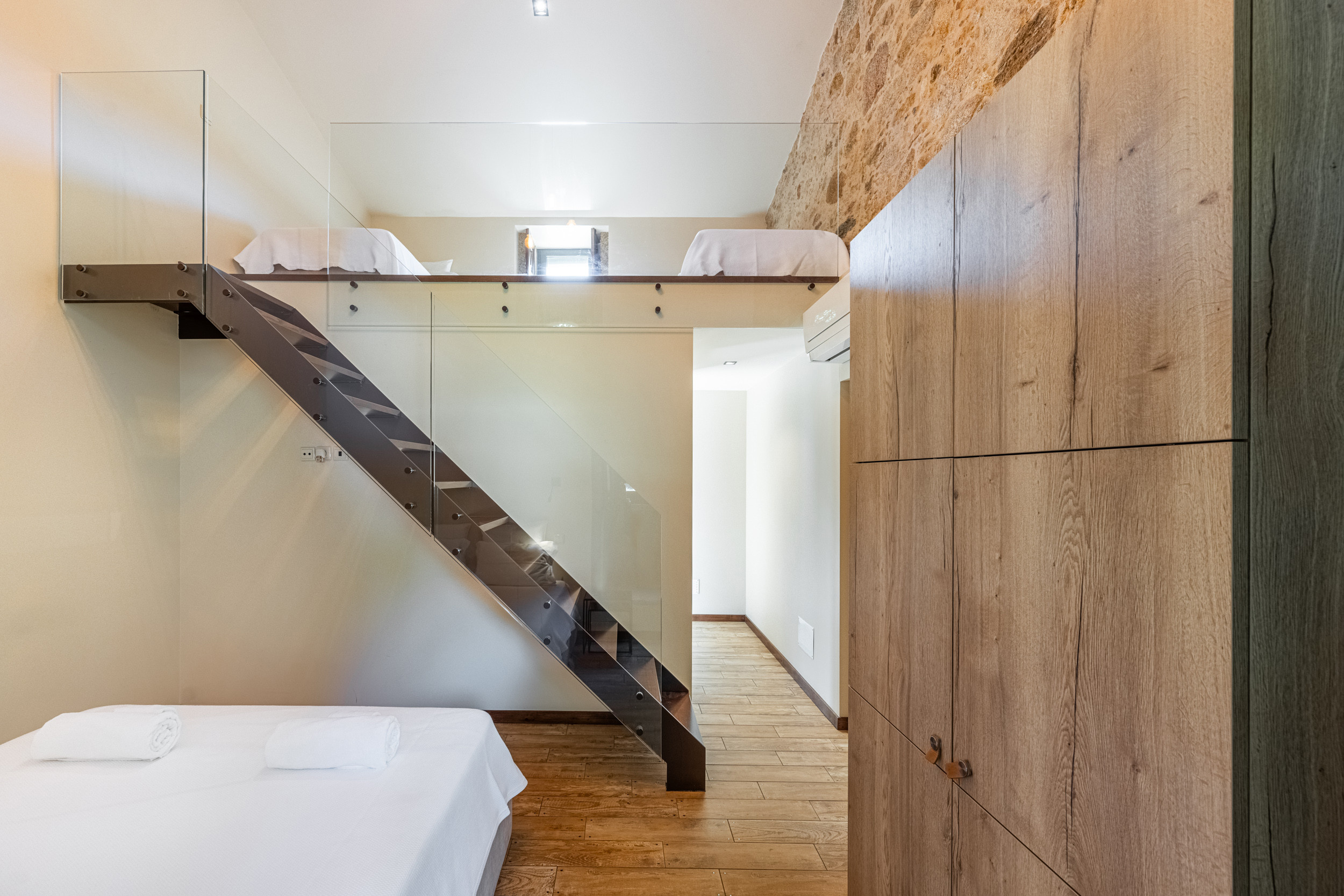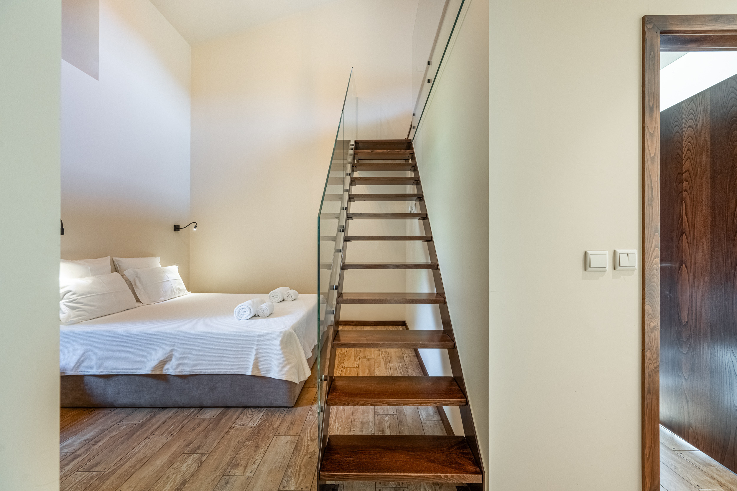 Obere Etage: Doppelschlafzimmer mit eigenem Duschbad.