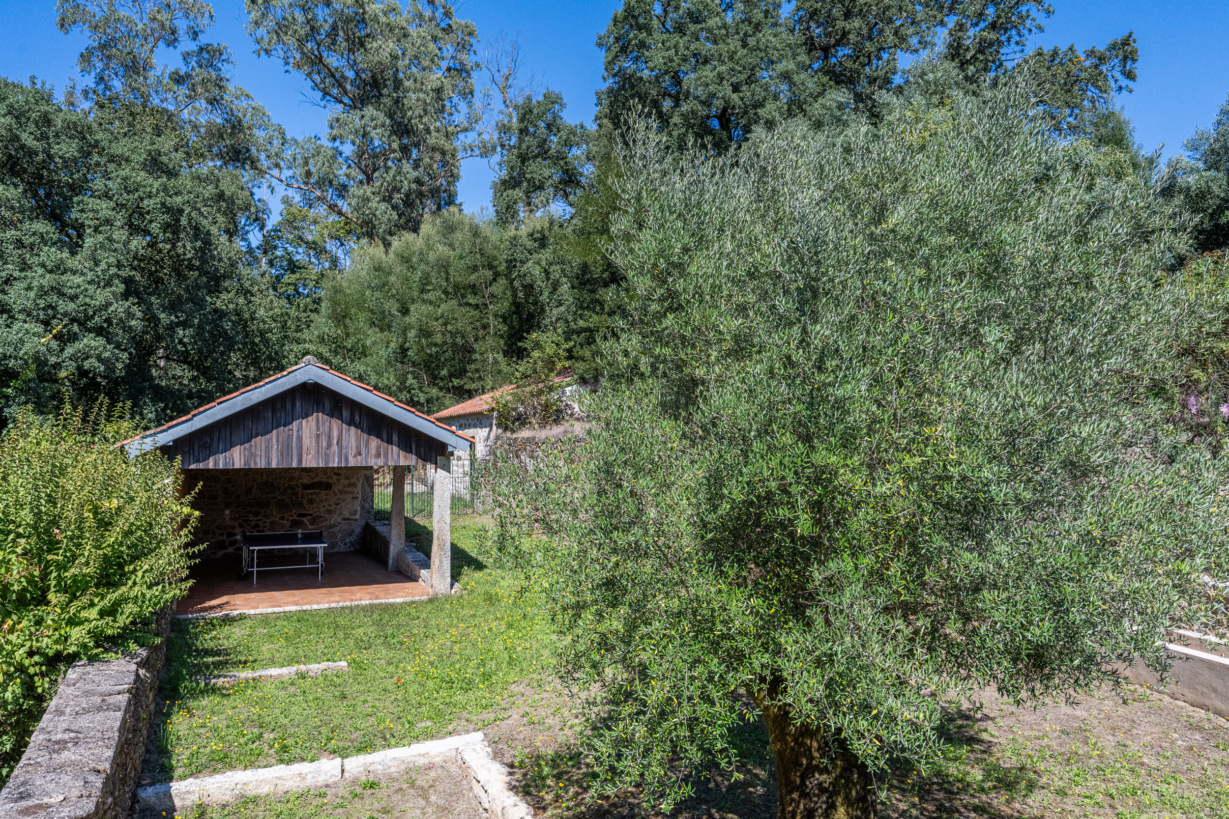Sonnenterrasse und Rasenflächen mit herrlicher Aussicht. Barbecue-Terrasse perfekt für al fresco speisen. Der private Swimmingpool ist 15 x 8 Meter groß. Parkplatz für das Auto. Die weitläufigen Gärten und der Weinberg mit seinen verschiedenen, malerischen Bereichen laden die Gäste ein, sich im Schatten zu entspannen oder jeden Morgen zu trainieren.