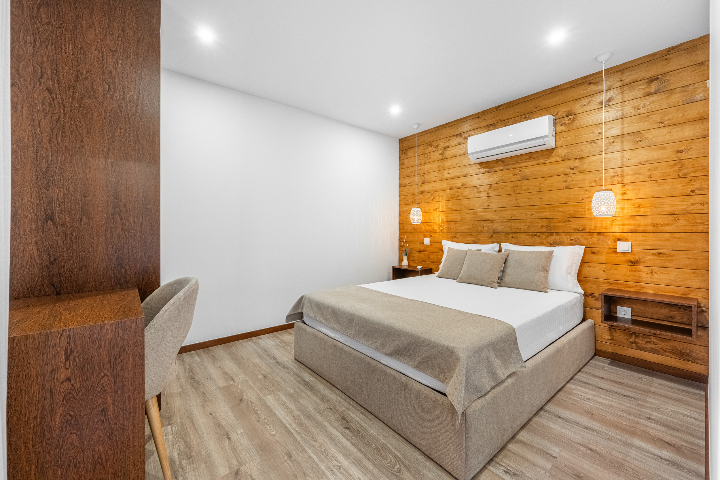 Dormitorio doble: Un dormitorio acogedor y elegante con su propio cuarto de baño privado, proporcionando mayor comodidad y accesibilidad para los huéspedes que se alojen en la planta baja.