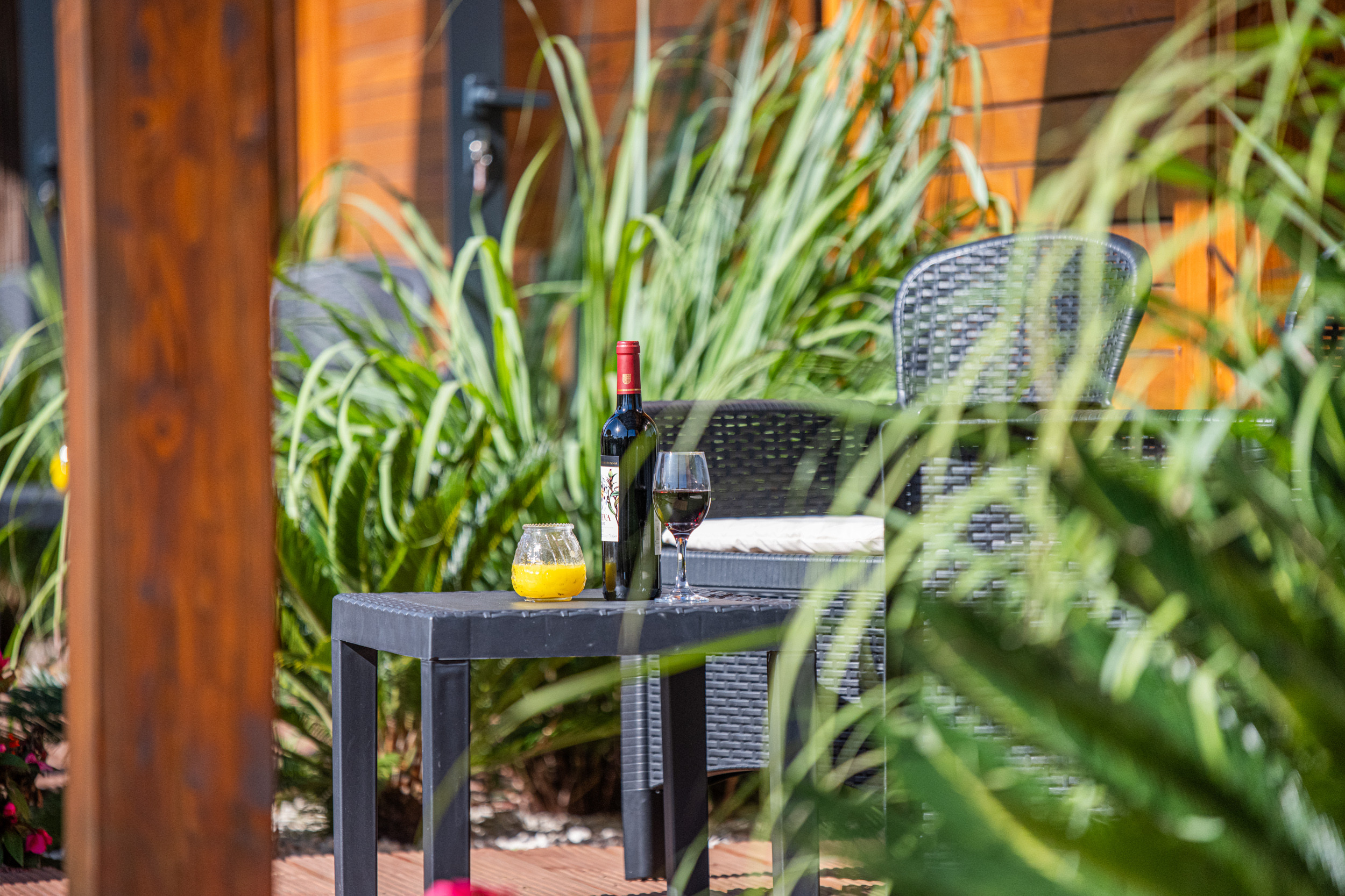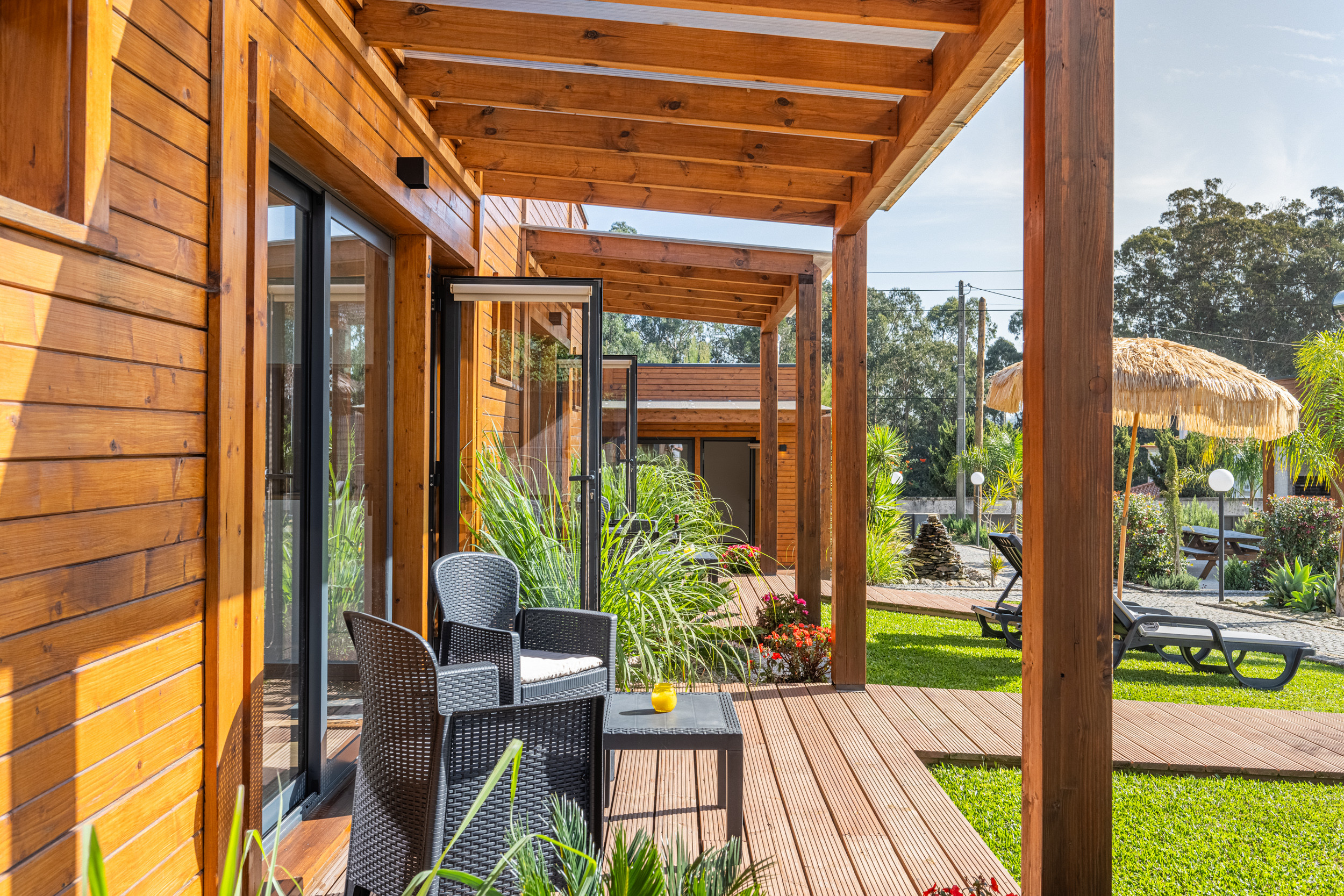 La propiedad incluye dos edificios de madera. El encantador anexo ofrece una cocina totalmente equipada y un acogedor salón, con un área de comedor para ocho personas — perfecto para comidas compartidas y una vida al aire libre sencilla.