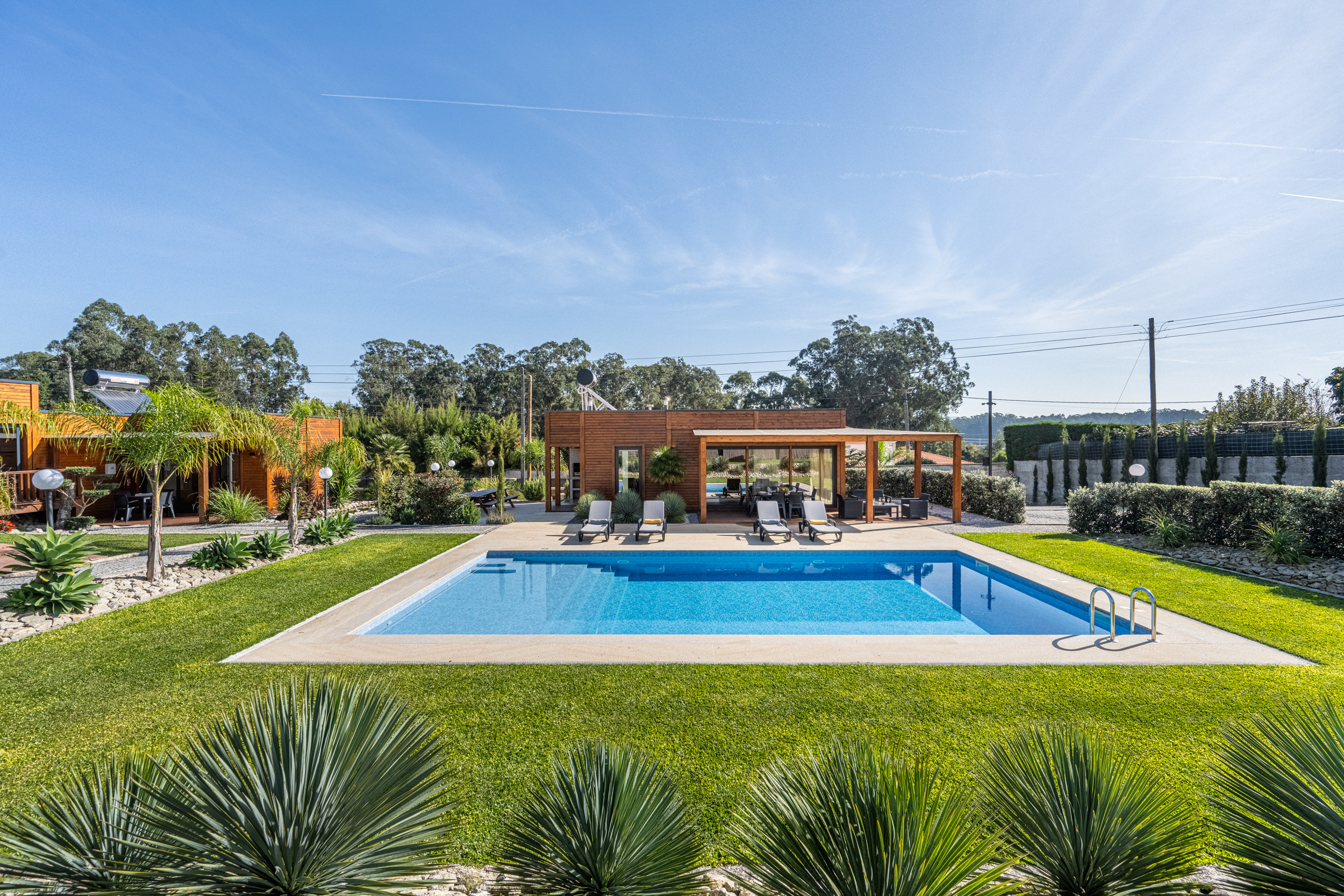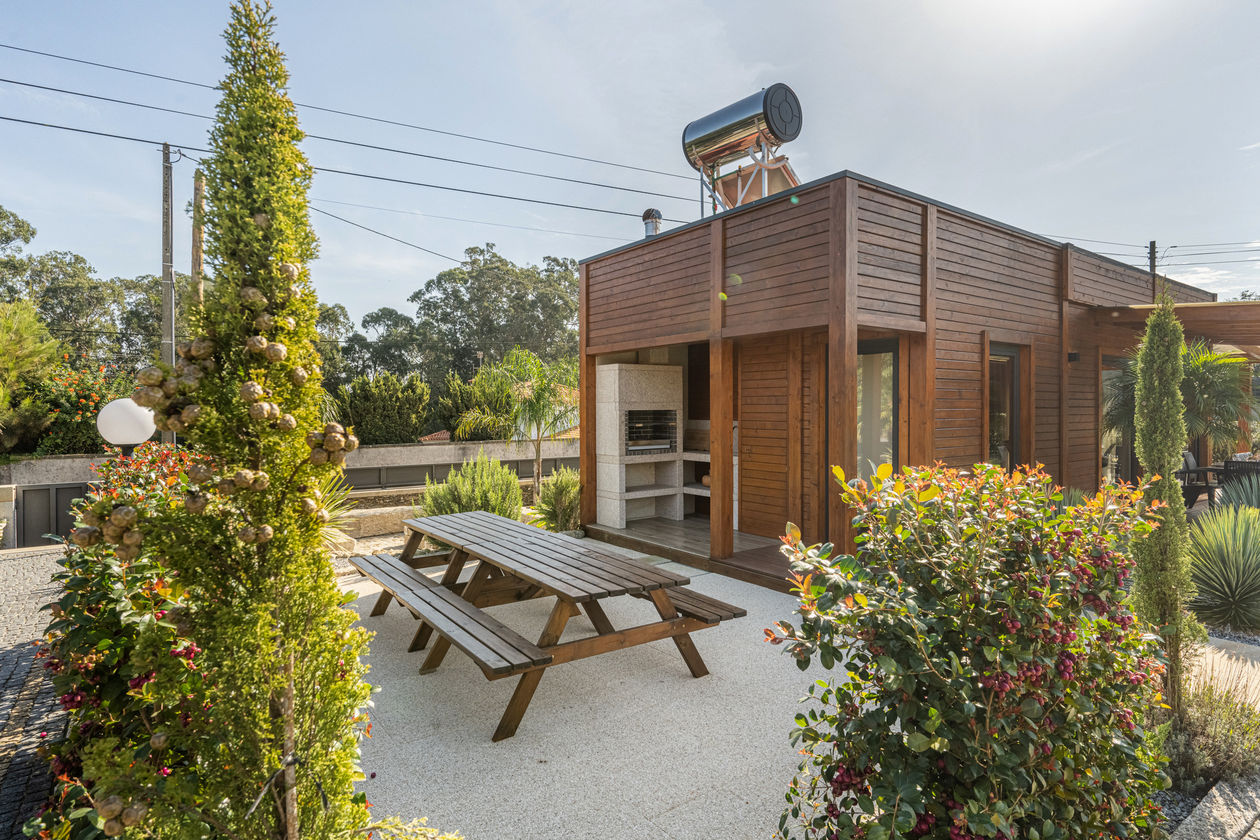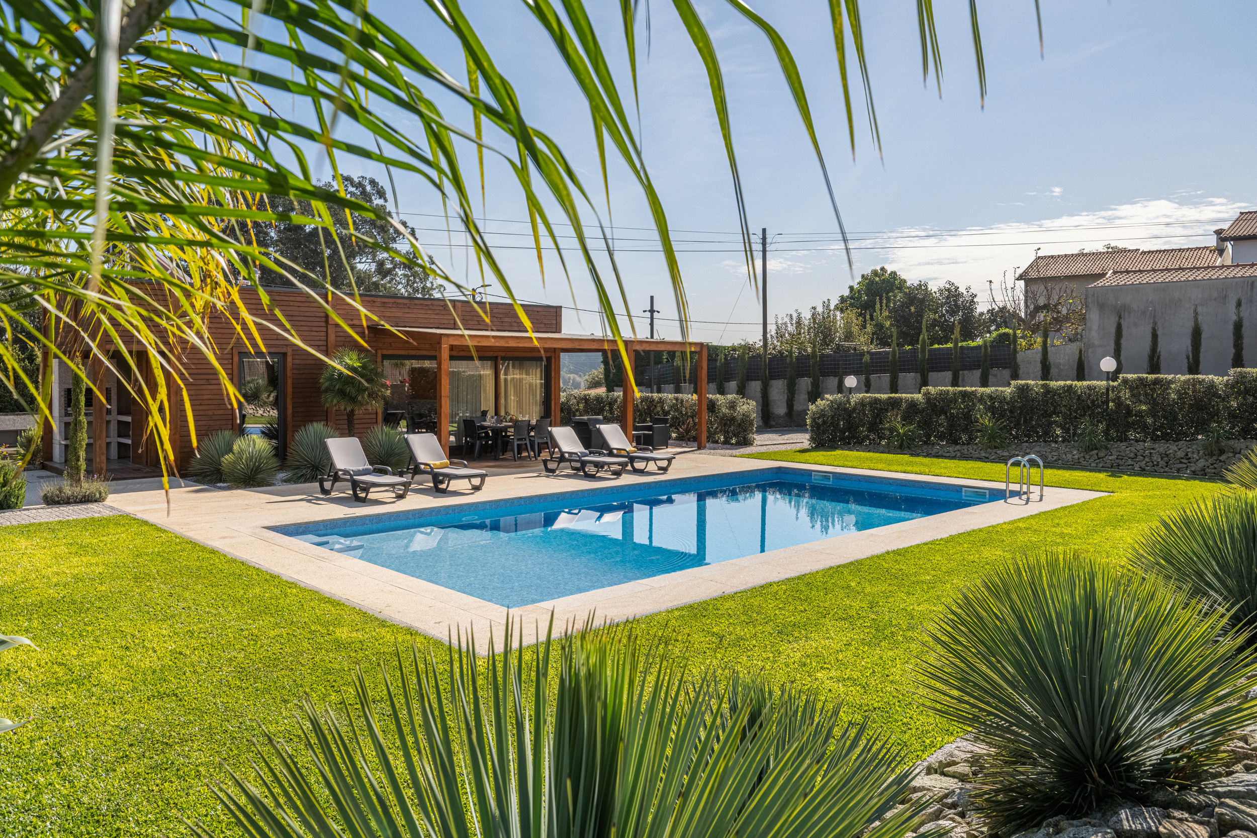 Rodeada de exuberante vegetación y la suave brisa de la costa, esta encantadora villa cerca de Esposende ofrece un equilibrio perfecto entre relajación y sofisticación. El hermoso jardín paisajístico, lleno de plantas vibrantes y sombrillas sombreadas, abraza una piscina reluciente en su centro: el lugar ideal para relajarse bajo el sol o disfrutar de una velada tranquila entre amigos y familia.