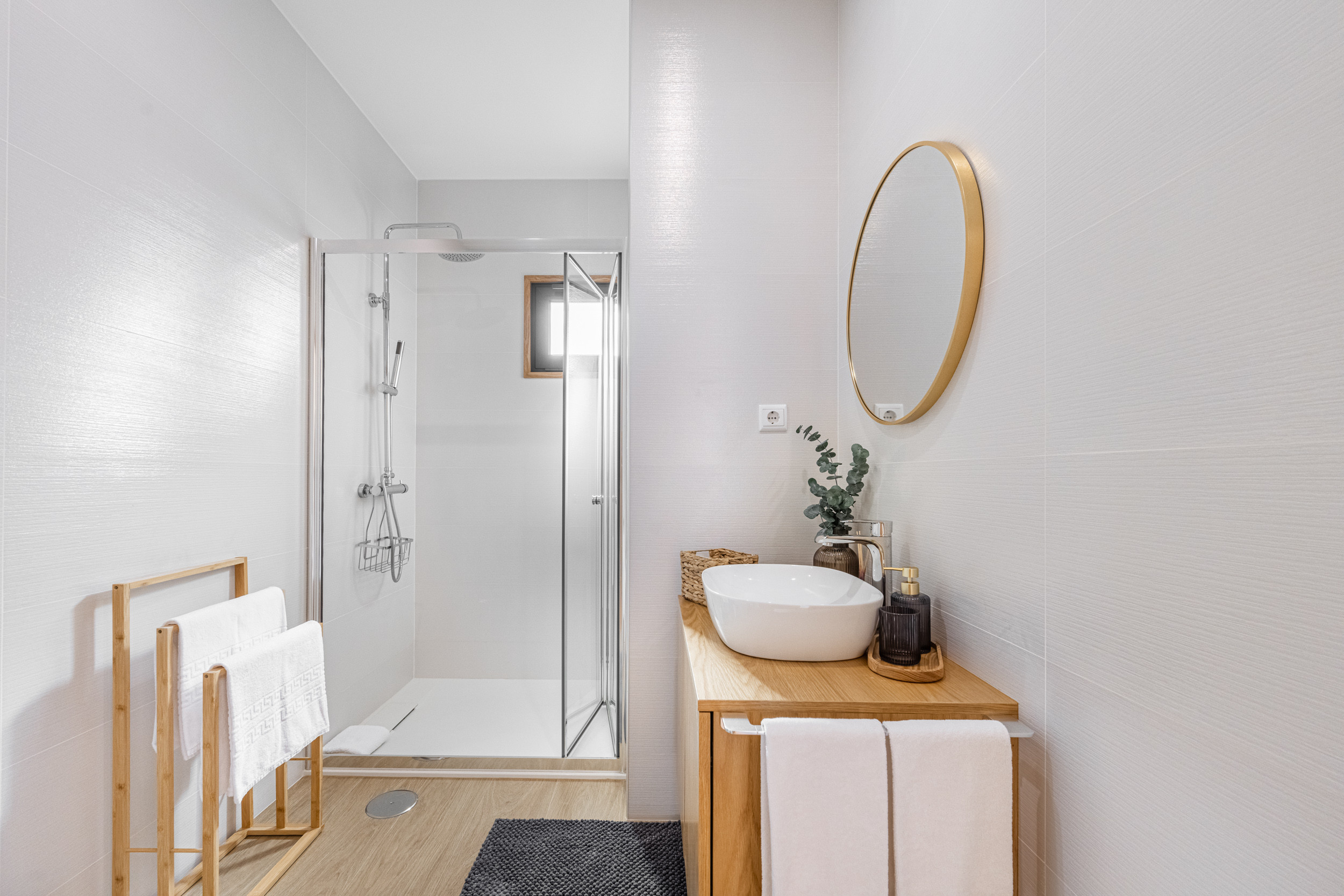 L'étage supérieur comprend deux chambres doubles et une chambre à deux lits, chacune avec sa propre salle de douche pour plus d'intimité et de commodité. La chambre principale dispose d'un balcon privé avec vue sur la piscine, créant ainsi un cadre serein pour la détente.