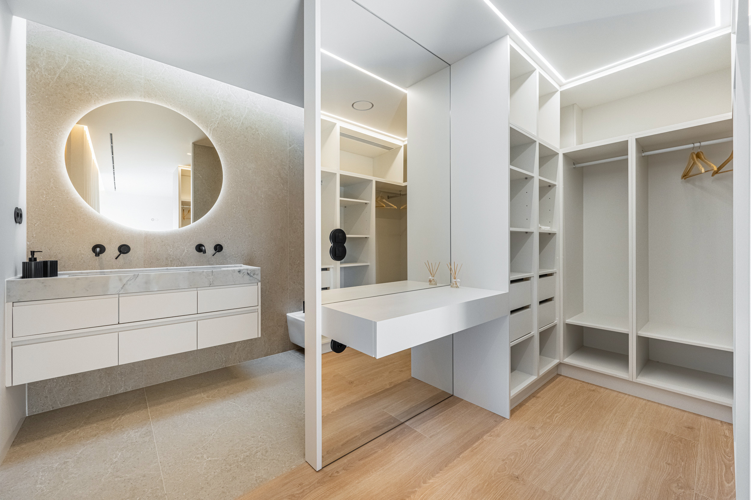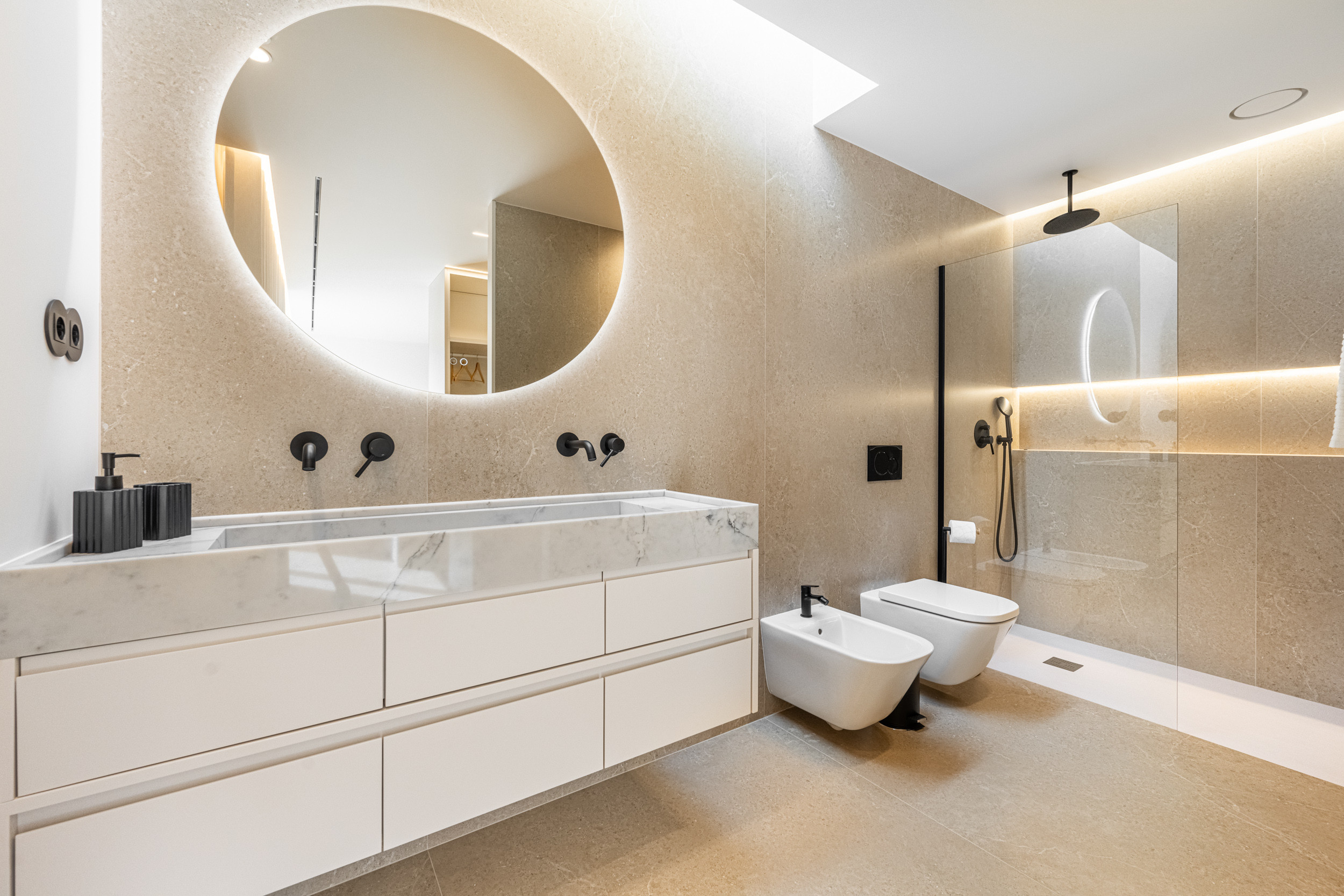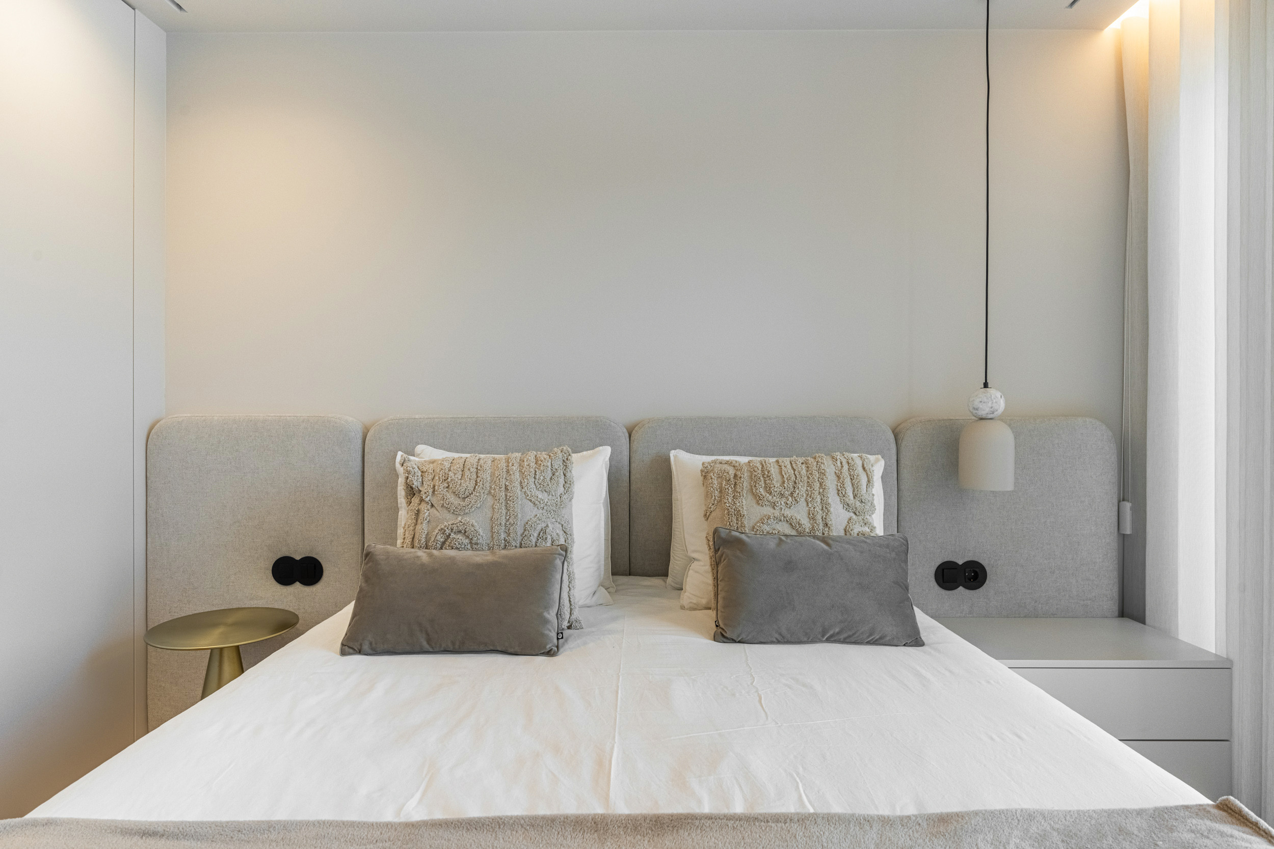 La villa dispose de trois chambres doubles, dont une luxueuse chambre principale avec salle de bain attenante. Les deux autres chambres partagent une salle de bain complète. Chaque chambre est conçue pour la détente, avec des lits confortables et une décoration élégante.