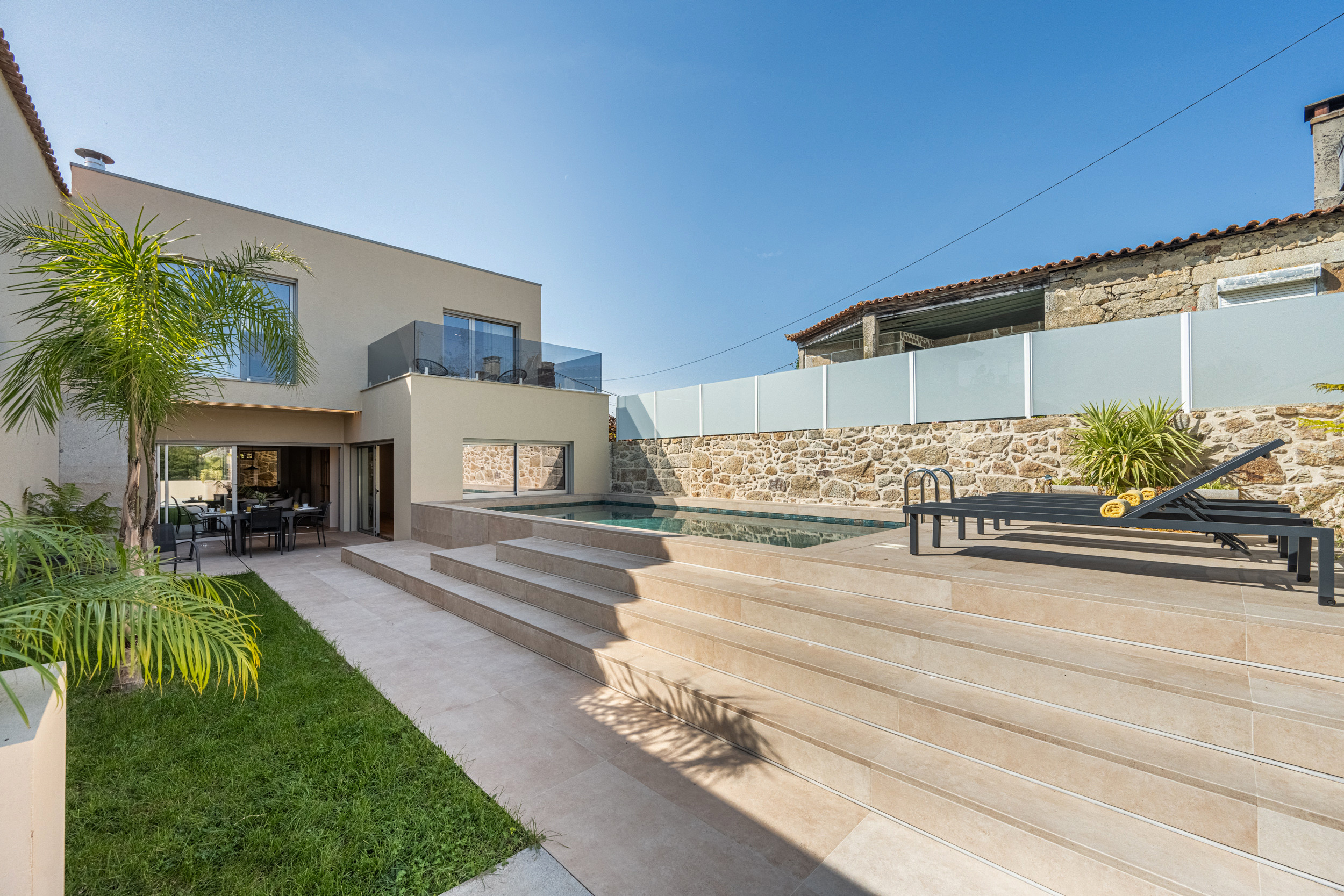 Situé à quelques minutes du cœur de la plus ancienne ville du Portugal, Ponte de Lima, cette villa élégante mêle tradition et design contemporain. Sa façade en pierre originale a été soigneusement préservée, tandis qu'un nouveau mur élégant a été ajouté pour créer un jardin intérieur charmant et un passage — un coin vert tranquille qui relie le passé et le présent en parfaite harmonie.