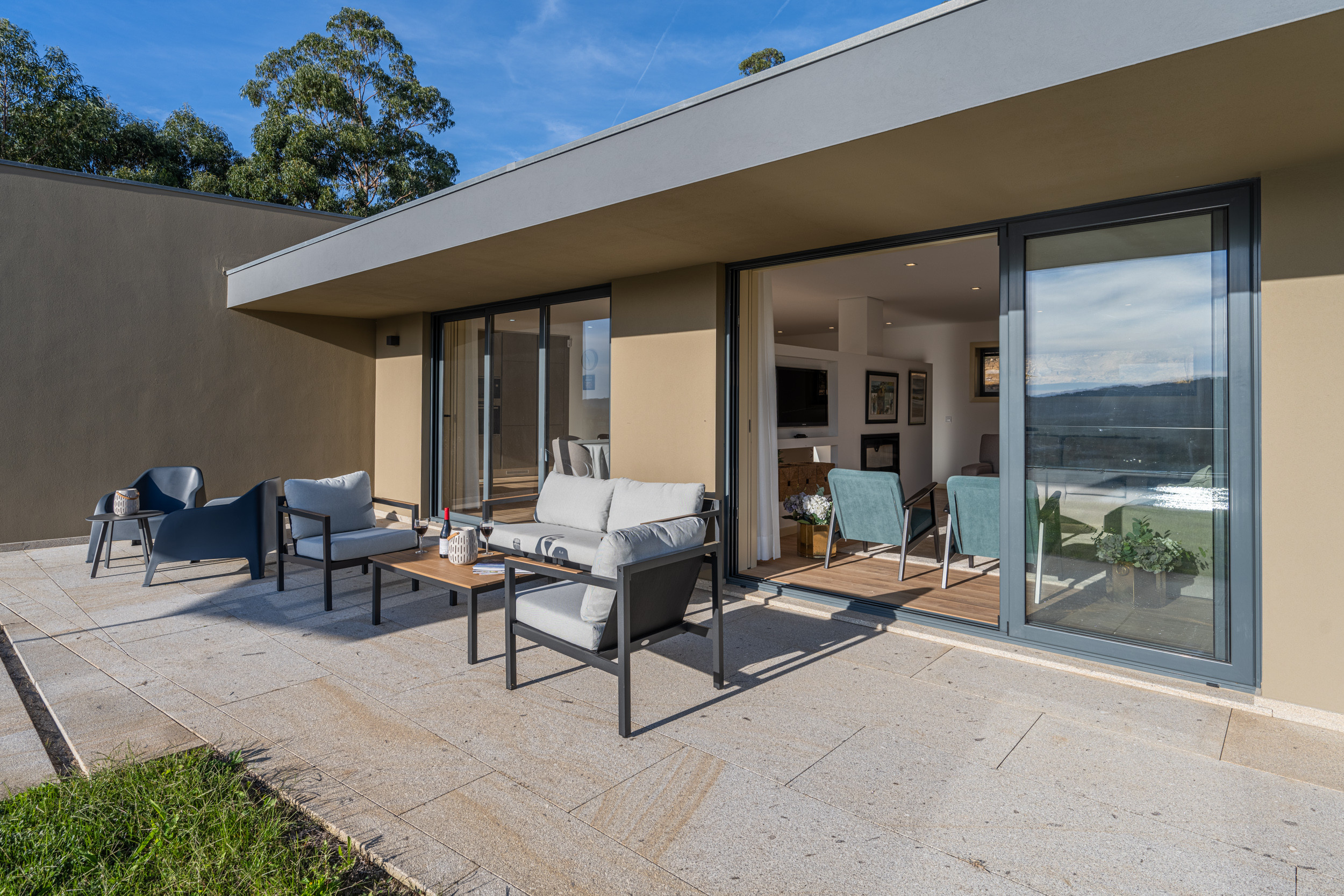 Situada numa posição elevada e isolada, a villa desfruta de vistas panorâmicas sobre o rio e a paisagem envolvente. No interior, a casa apresenta três quartos cuidadosamente decorados — dois duplos e um twin — cada um com a sua casa de banho privativa, garantindo conforto e privacidade para todos os hóspedes. Está também disponível uma casa de banho de serviço.