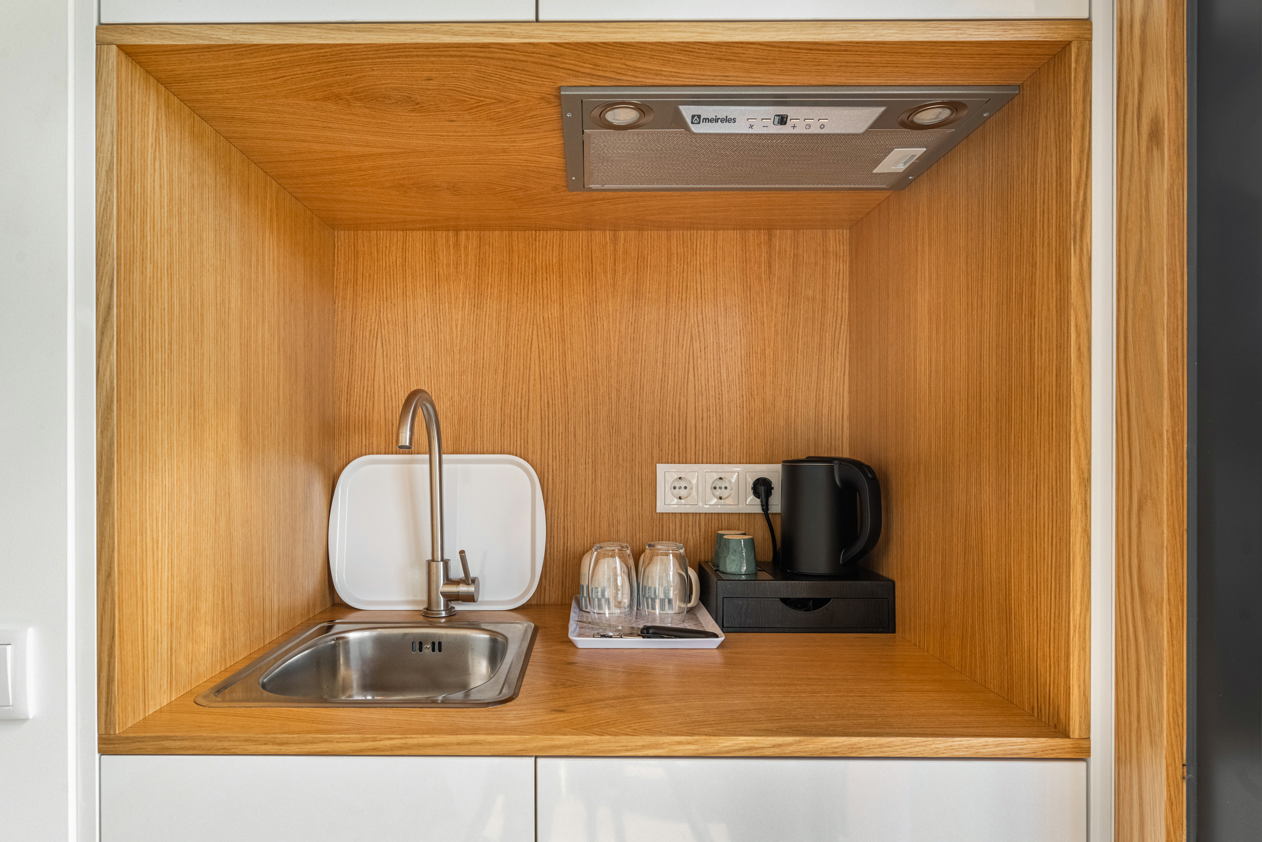 Cozinha em open space: Totalmente equipada com aparelhos elétricos modernos, incluindo uma placa de indução, tornando-a perfeita para os entusiastas da culinária.