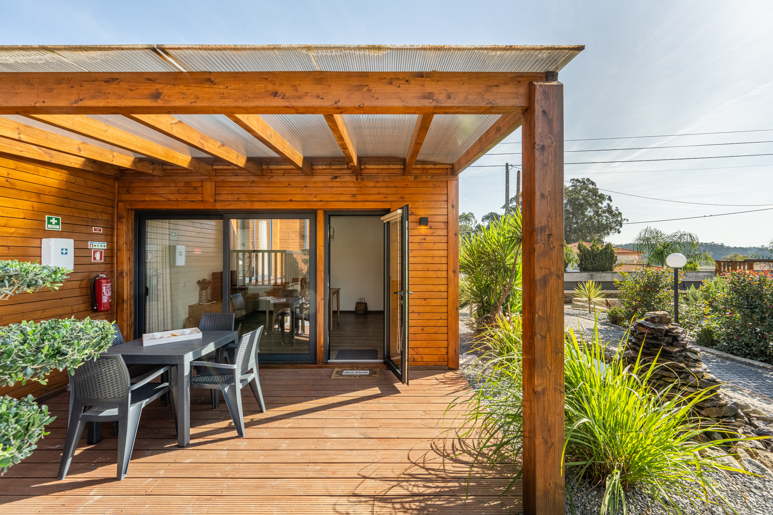 A propriedade inclui dois edifícios de madeira. O encantador anexo oferece uma cozinha totalmente equipada e uma sala acolhedora, com uma área de refeições para oito pessoas — perfeito para refeições partilhadas e uma vida ao ar livre descontraída.
