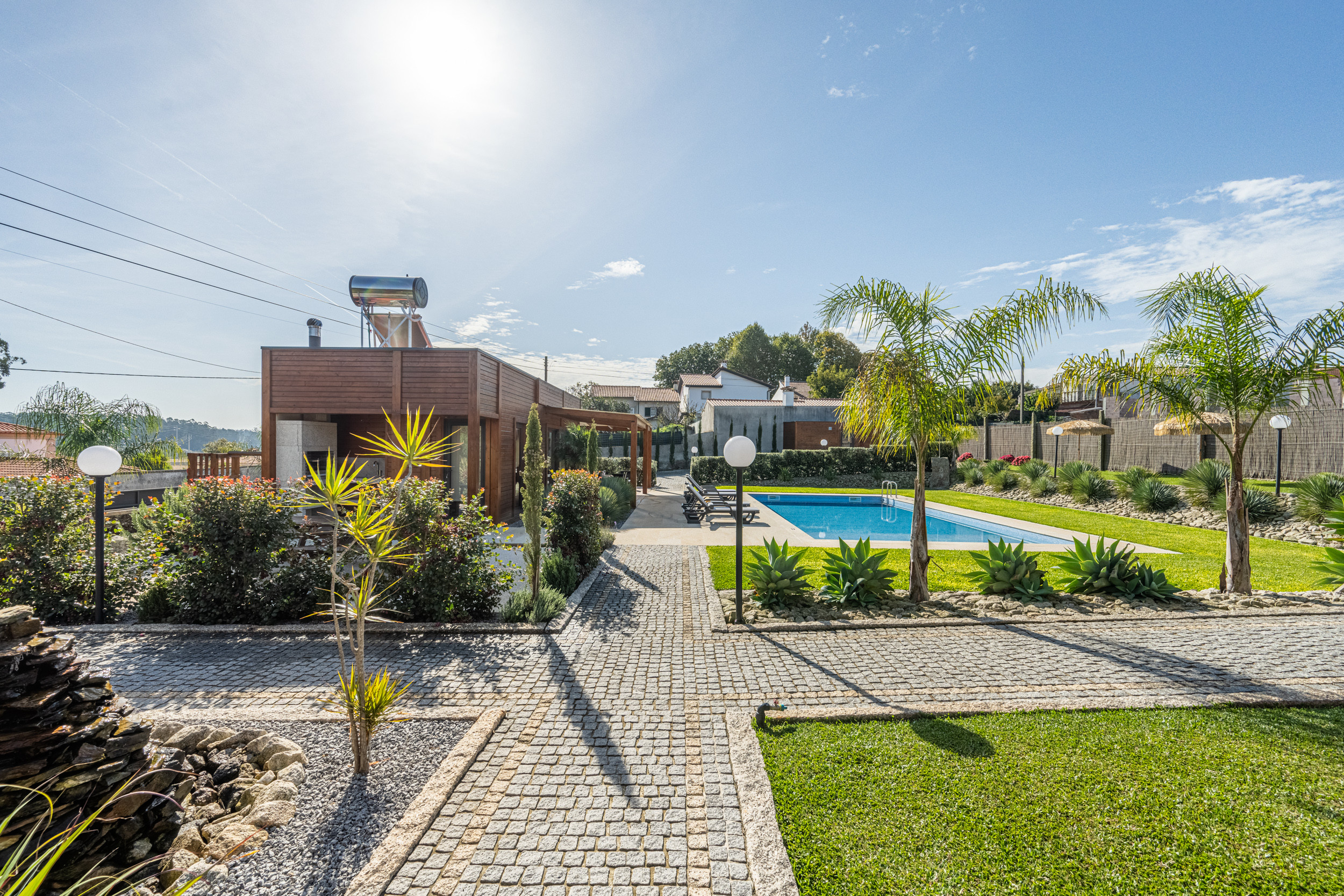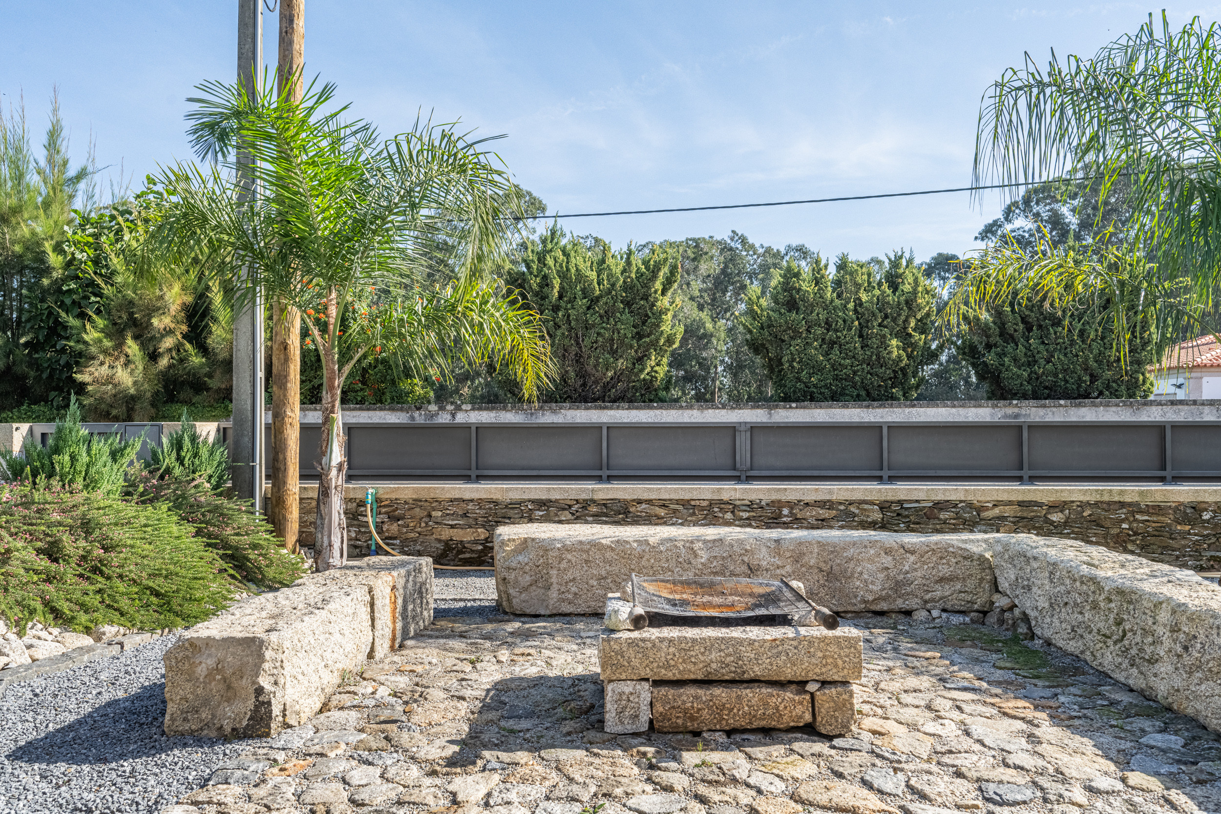 Rodeada por vegetação exuberante e a brisa suave da costa, esta encantadora vivenda perto de Esposende oferece um equilíbrio perfeito entre relaxamento e sofisticação. O belo jardim paisagístico, repleto de plantas vibrantes e guarda-sóis sombreados, abraça uma piscina cintilante no seu centro — o local ideal para relaxar sob o sol ou desfrutar de uma noite tranquila entre amigos e família.