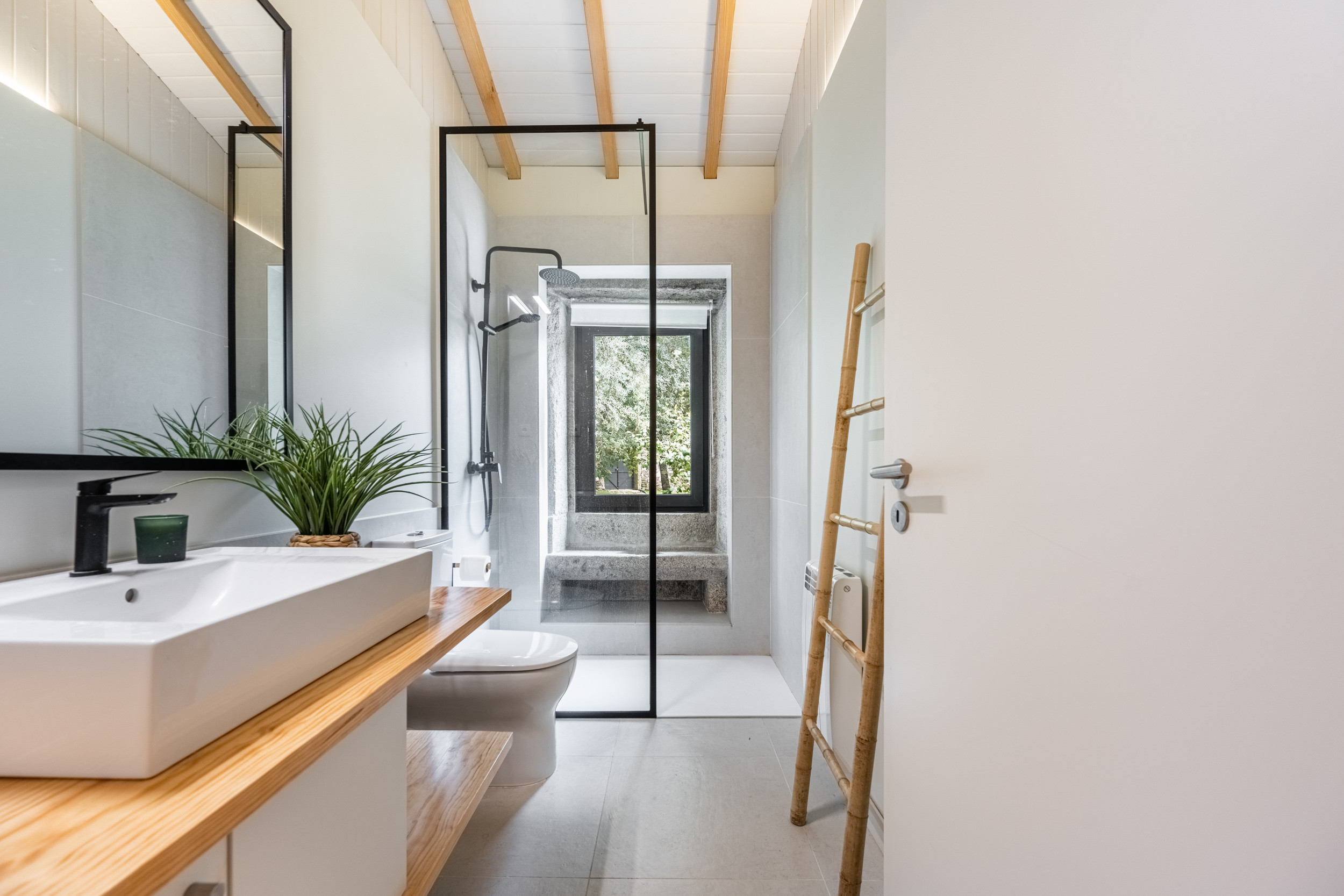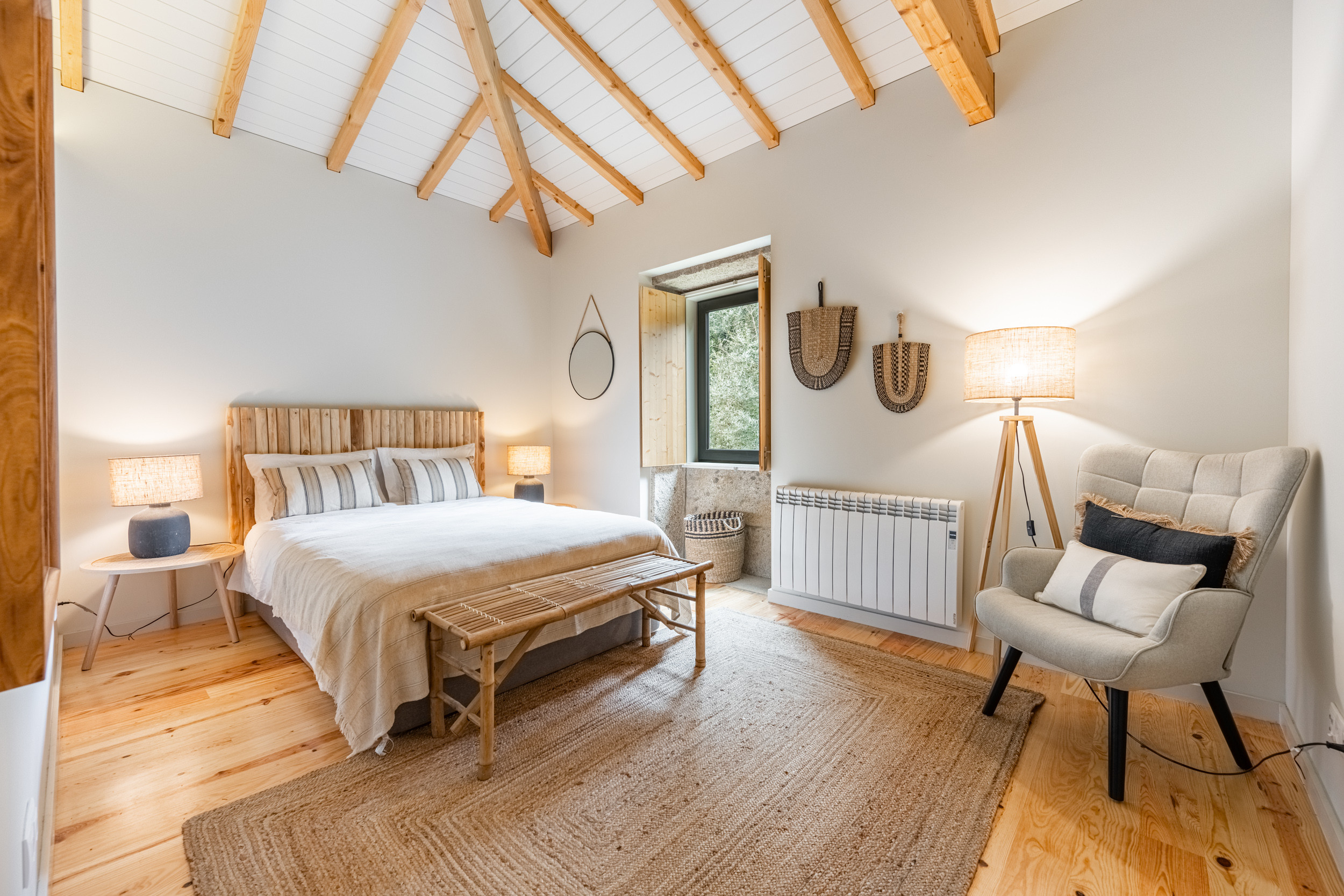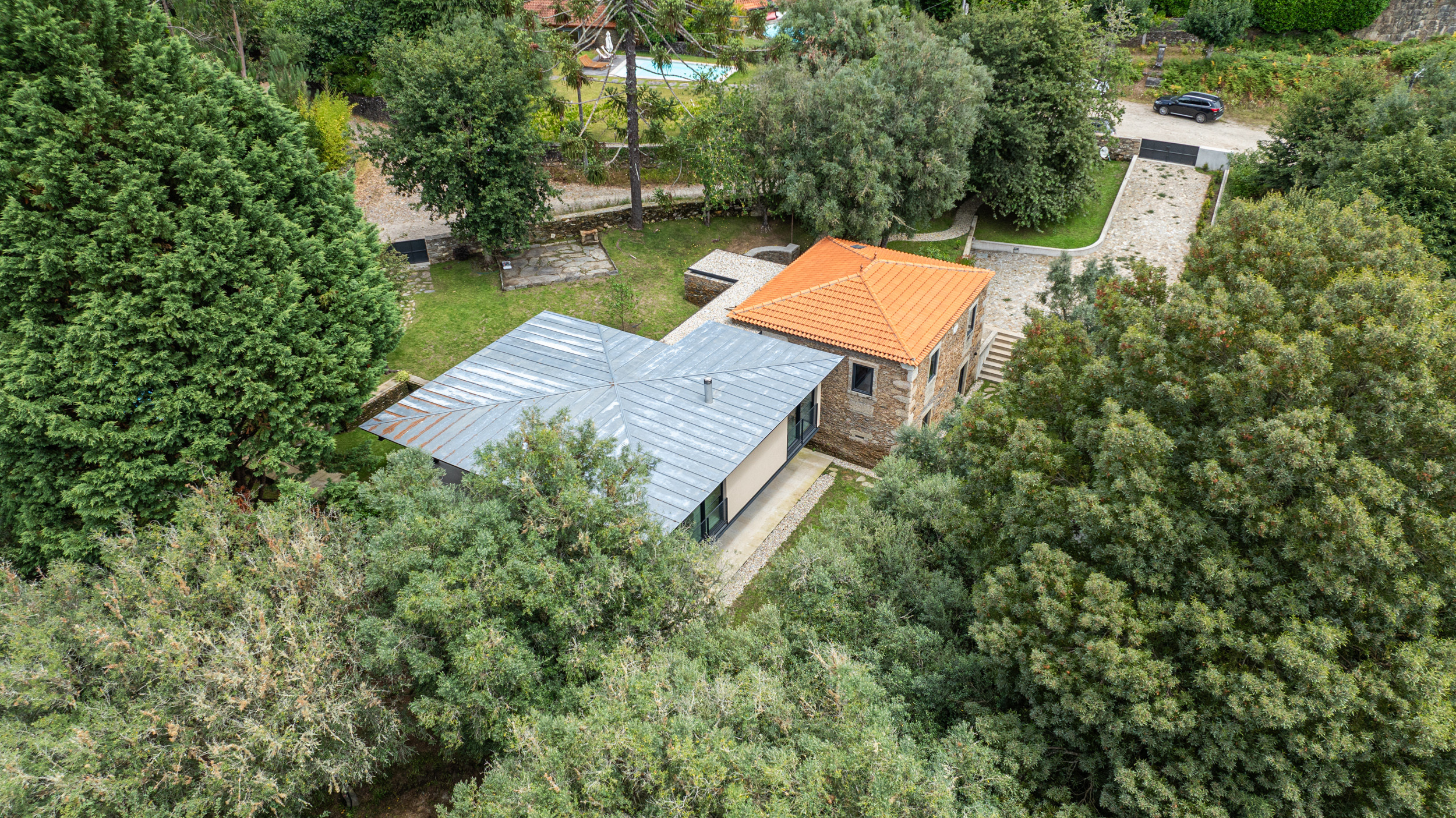 Tucked away in the peaceful hills of Orbacém, the beautiful restored house in schist has welcomed a comtemporary building to accommodate a larger number of guests.