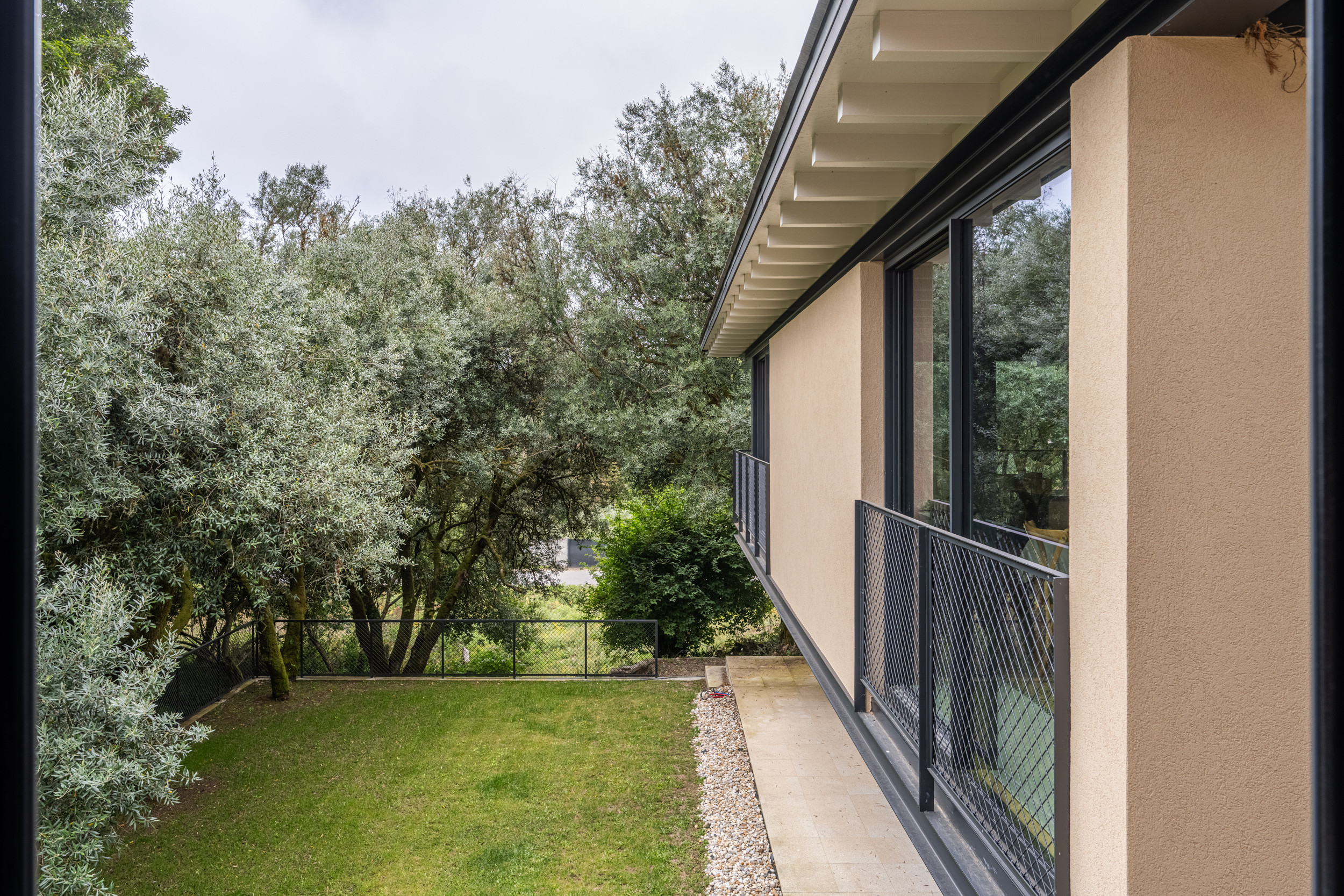 Stepping outside, guests are welcomed into a private oasis. The garden, shaded naturally by olive, oak, and pine trees, offers a serene and calming retreat where you can relax and recharge. The patio invites alfresco dining with views over the pool, while the barbecue provides the perfect excuse to enjoy fresh local produce outdoors. The private swimming pool, surrounded by greenery and mountain views, adds to the sense of tranquillity, whether you’re soaking up the sun on a summer afternoon or enjoying a refreshing swim at the end of a day’s exploration.