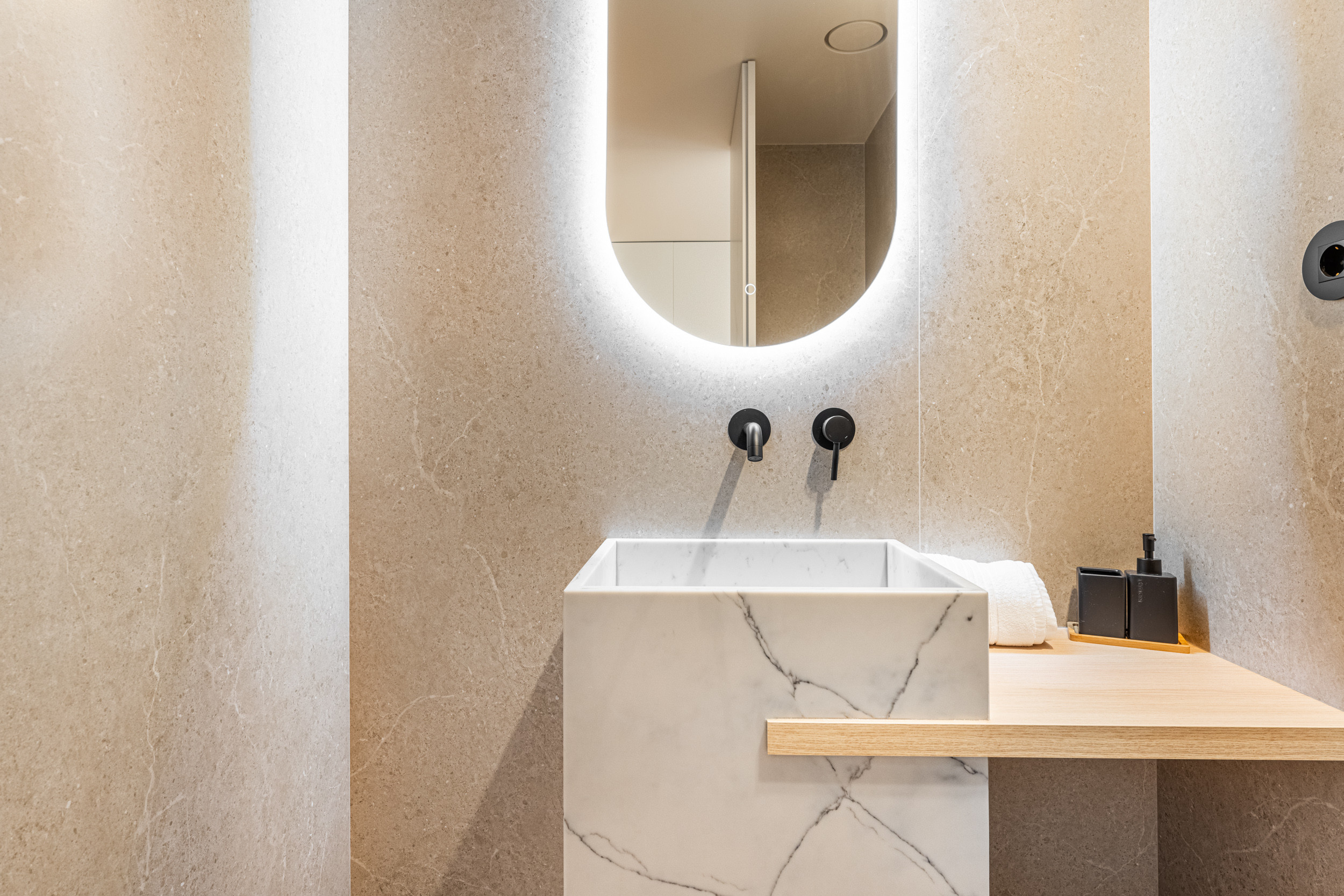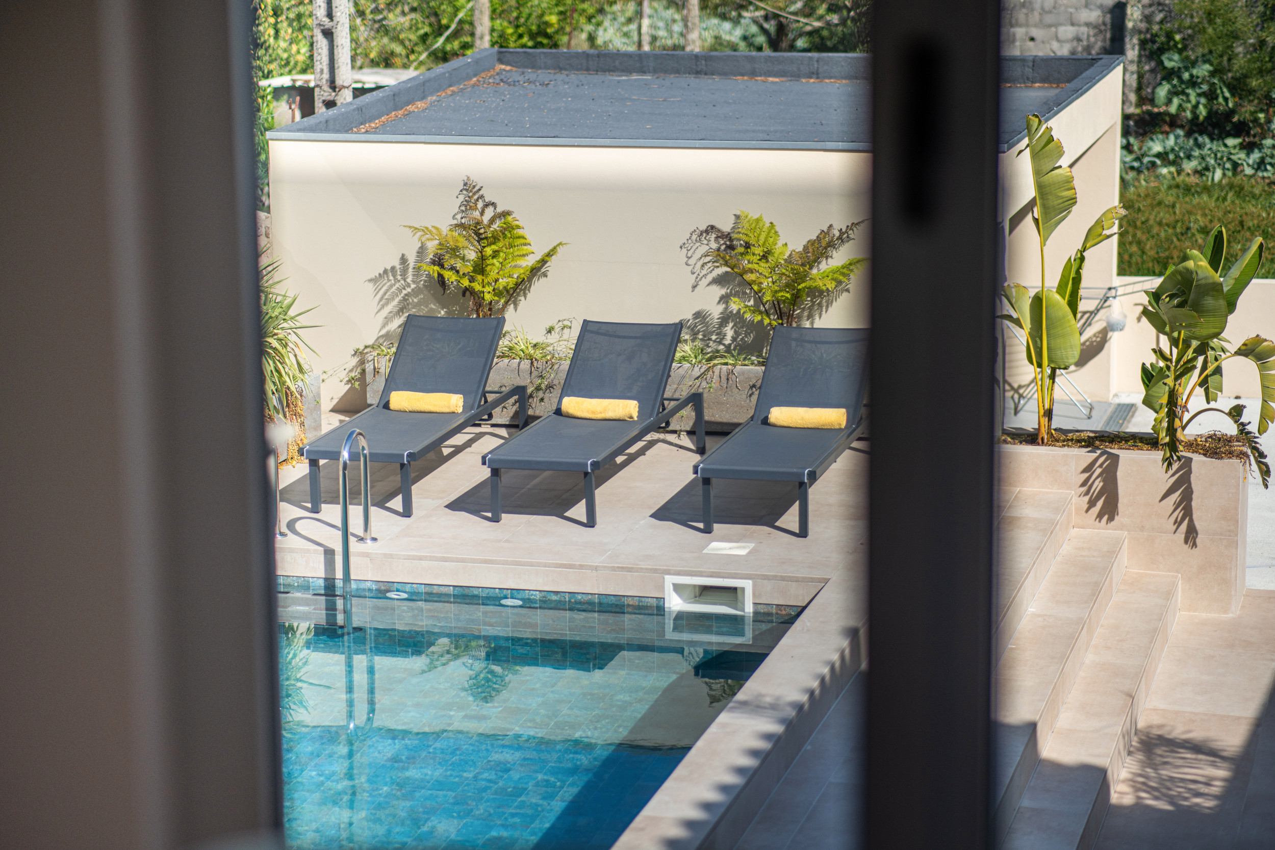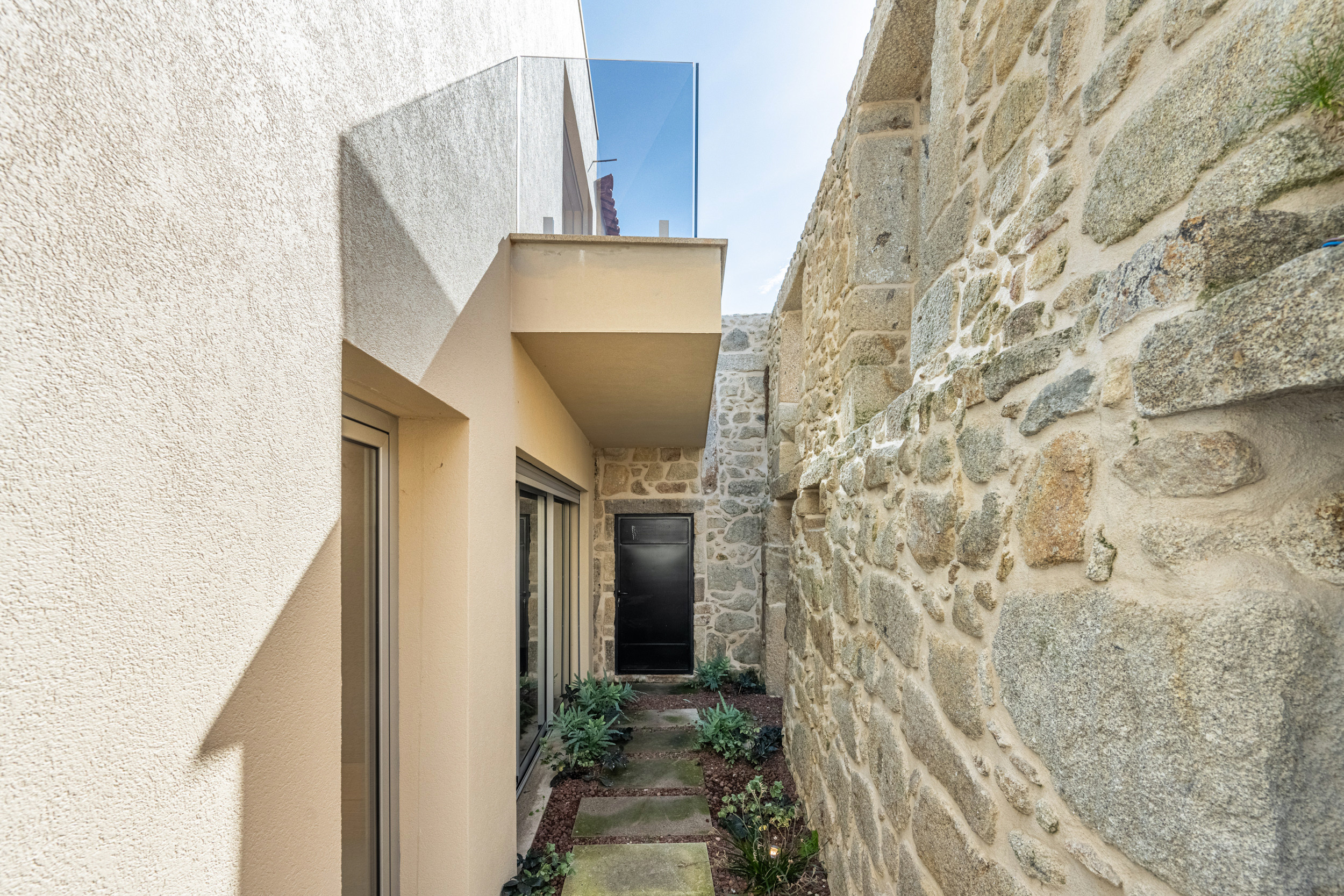 Set within minutes of the heart of Portugal’s oldest town, Ponte de Lima, this elegant villa beautifully blends tradition with contemporary design. Its original stone façade has been lovingly preserved, while a sleek new wall was added to create a charming inner garden and passageway — a quiet green nook that connects past and present in perfect harmony.
