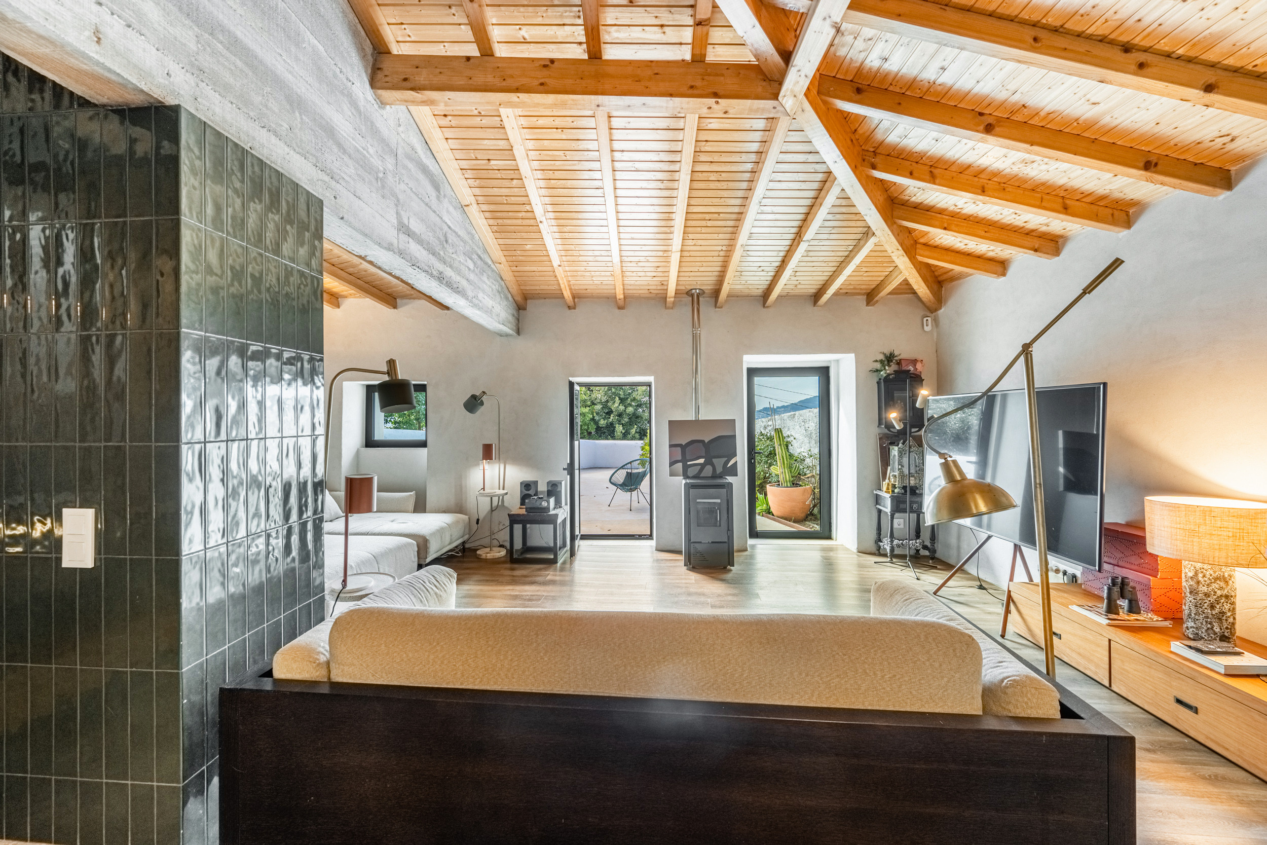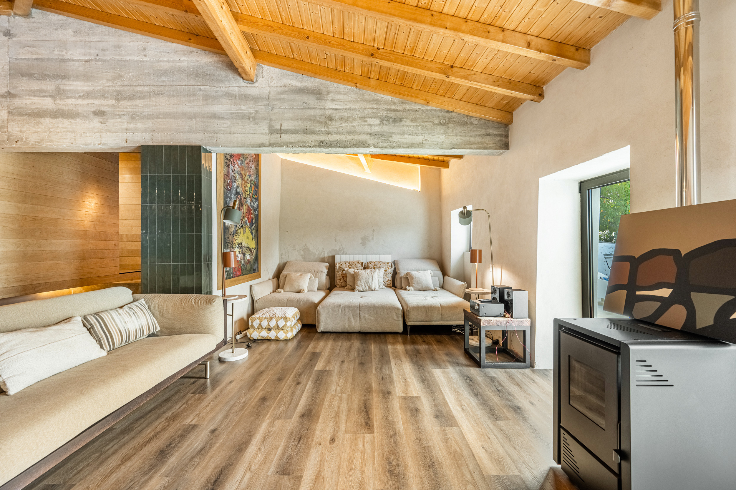 Outside, the villa invites you to slow down and savour life outdoors — a swimming pool with breathtaking river views and the Spanish rolling hills, a BBQ and dining terrace, and plenty of space to unwind in the fresh mountain air.